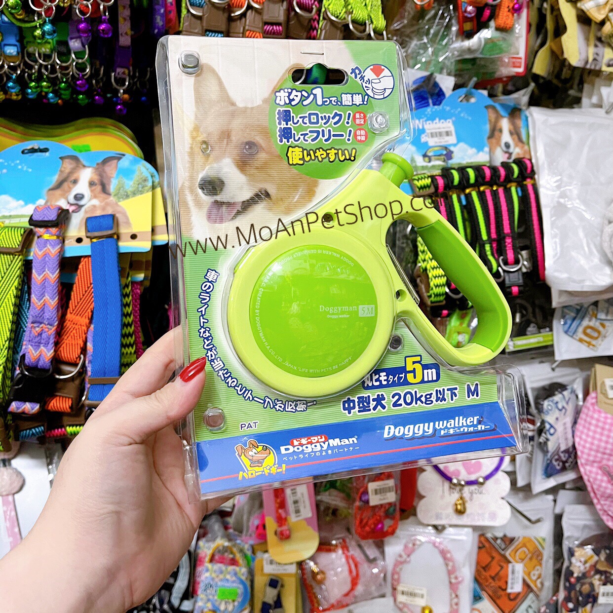 Dây Dẫn/ Dắt Rút Tự Động DoggyWalker M [5 mét, Xanh Lá]