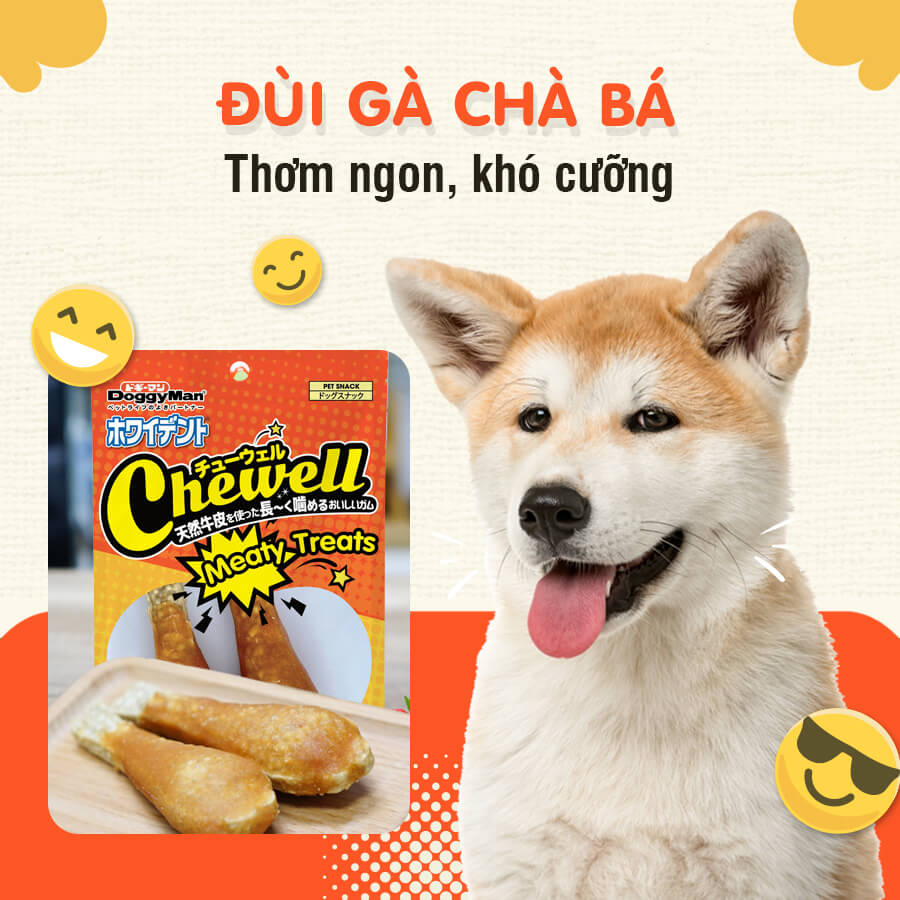 Phần đùi được kết hợp từ da bò, gạo, nếp, bột bắp bổ sung nhiều dinh dưỡng. Lớp thịt gà giàu Protein phủ thêm bên ngoài. Tạo nên món ăn khoái khẩu và giàu dưỡng chất cho chó cưng.