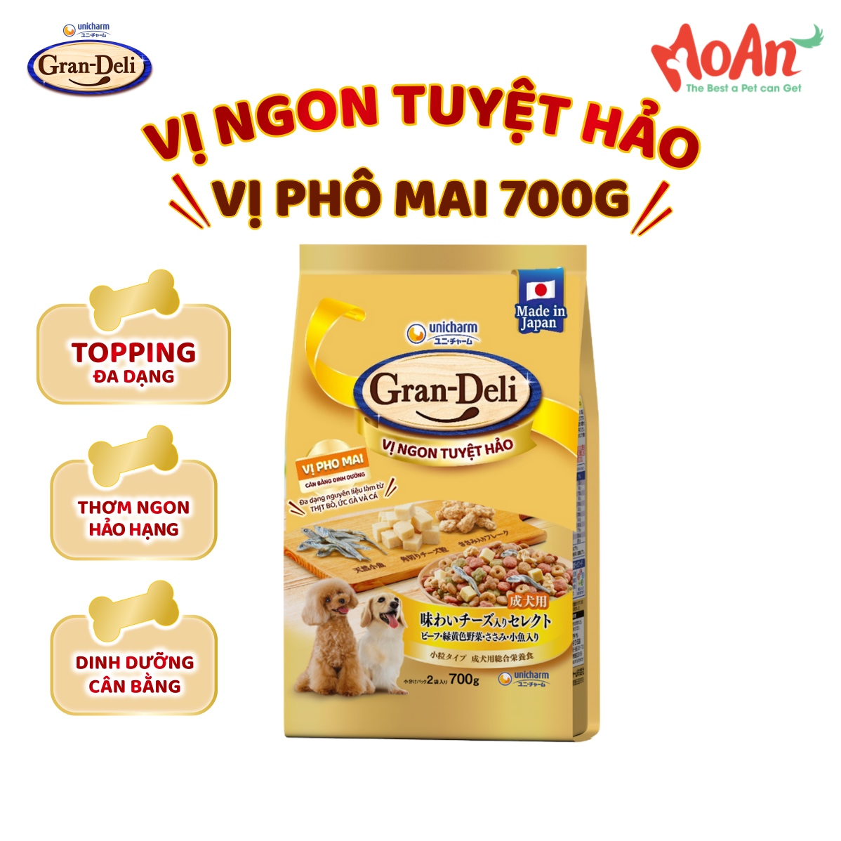 Hạt Gran-Deli Unicharm Nhật Bản vị Phô Mai cho Cún mọi độ tuổi 700g