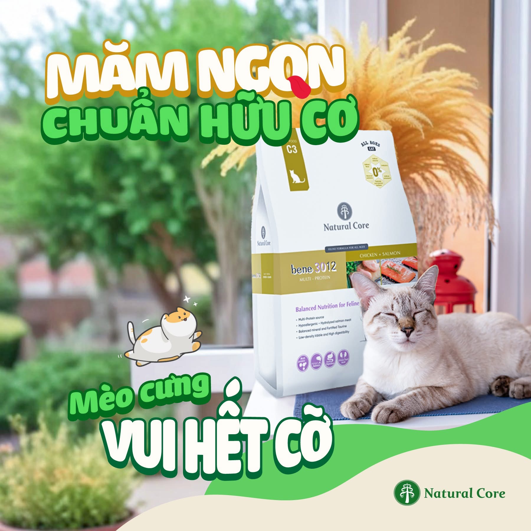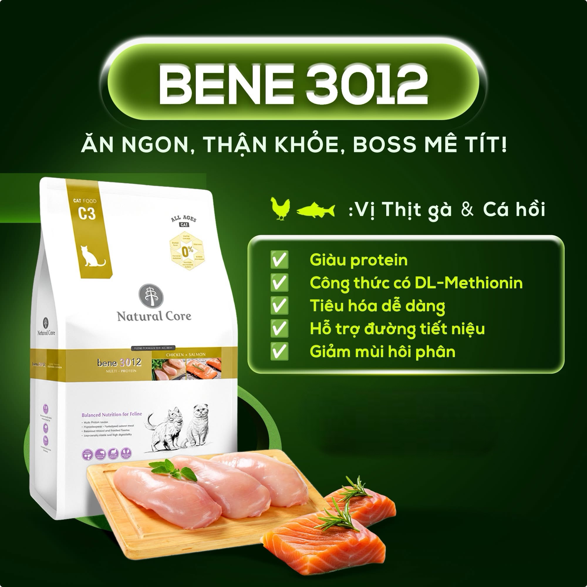 Thức ăn cho mèo Natural Core C3 Bene 3012 là thức ăn giàu dinh dưỡng cho mèo trưởng thành: