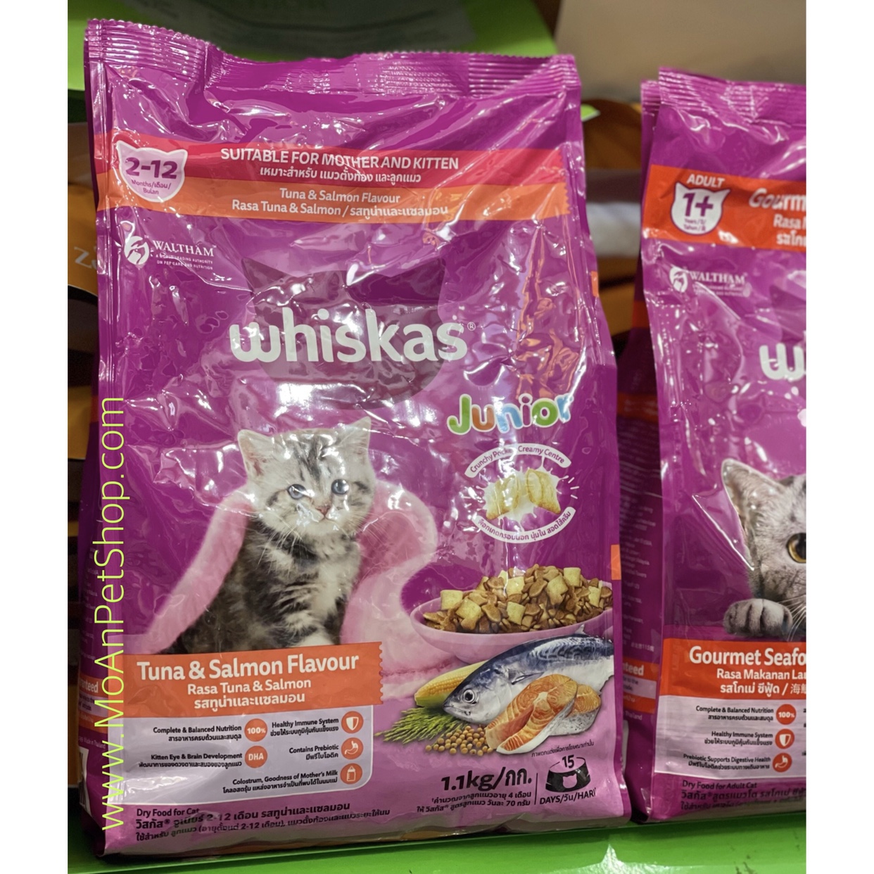 Hạt Mèo Whiskas Junior Cá Ngừ & Cá Hồi Tuna & Salmon 1.1kg