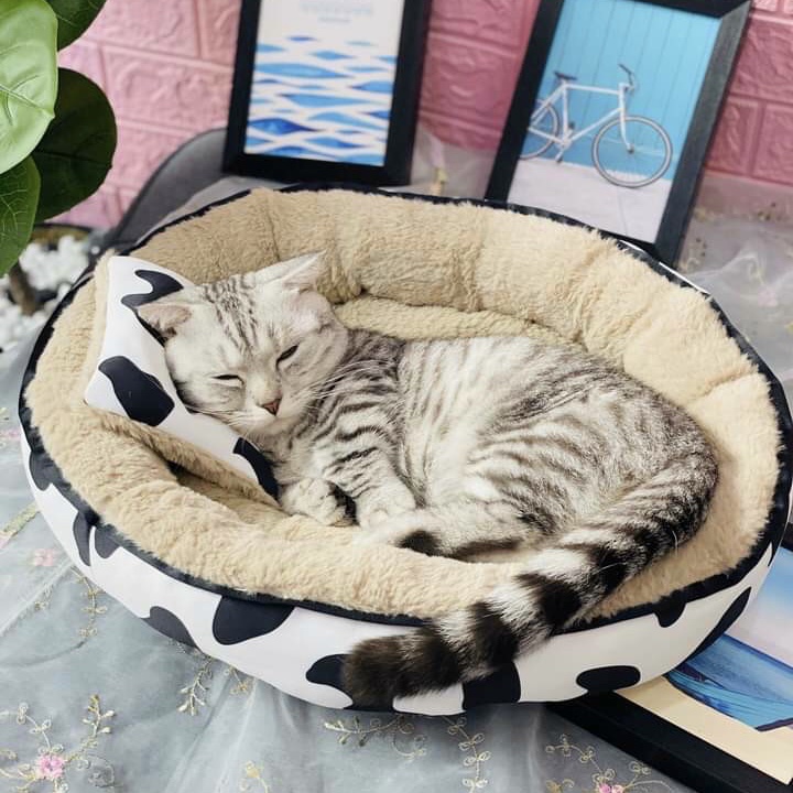 Ổ Nệm Bông Tròn Bò Sữa kèm Gối 45x45cm