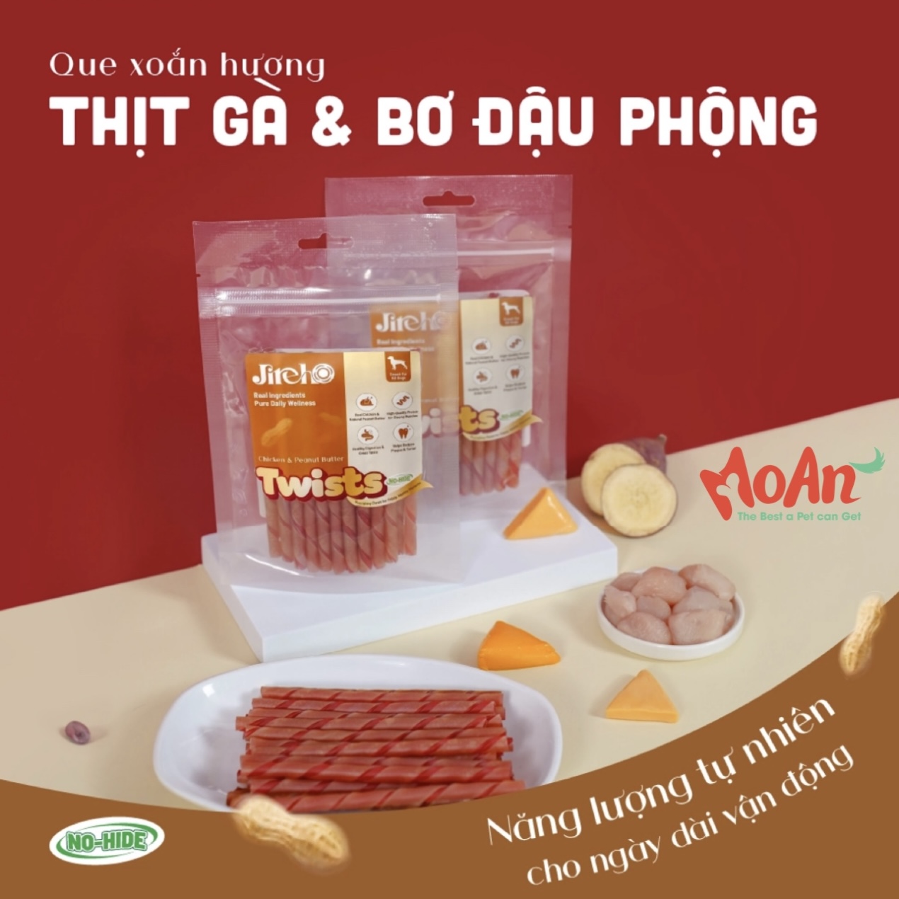 Que xoắn Thịt gà & Sữa JirehO cho chó là snack nhai thơm béo từ ức gà thật, sữa và rau củ tự nhiên, mang đến hương vị thơm ngon mà mọi cún cưng đều không thể cưỡng lại. Với công thức cân bằng giữa đạm dễ tiêu, chất xơ tự nhiên và vitamin thiết yếu, phù hợp sử dụng hằng ngày như phần thưởng hoặc món ăn vặt an toàn cho Boss.