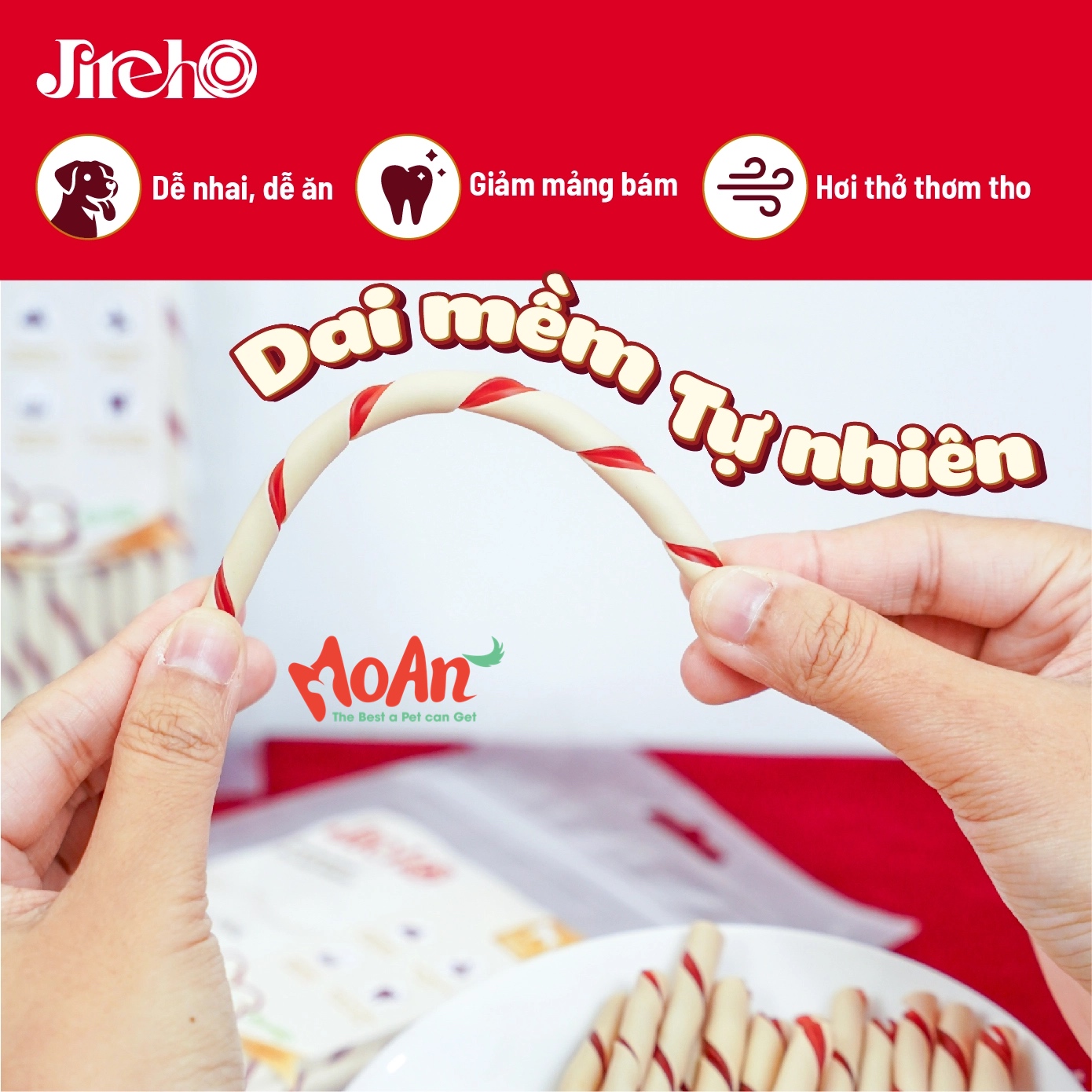 Thiết kế xoắn dai mềm vừa phải giúp thú cưng nhai lâu hơn, hỗ trợ giảm mảng bám, làm sạch răng và hơi thở thơm tho dễ chịu để mỗi lần nhai là một niềm vui.