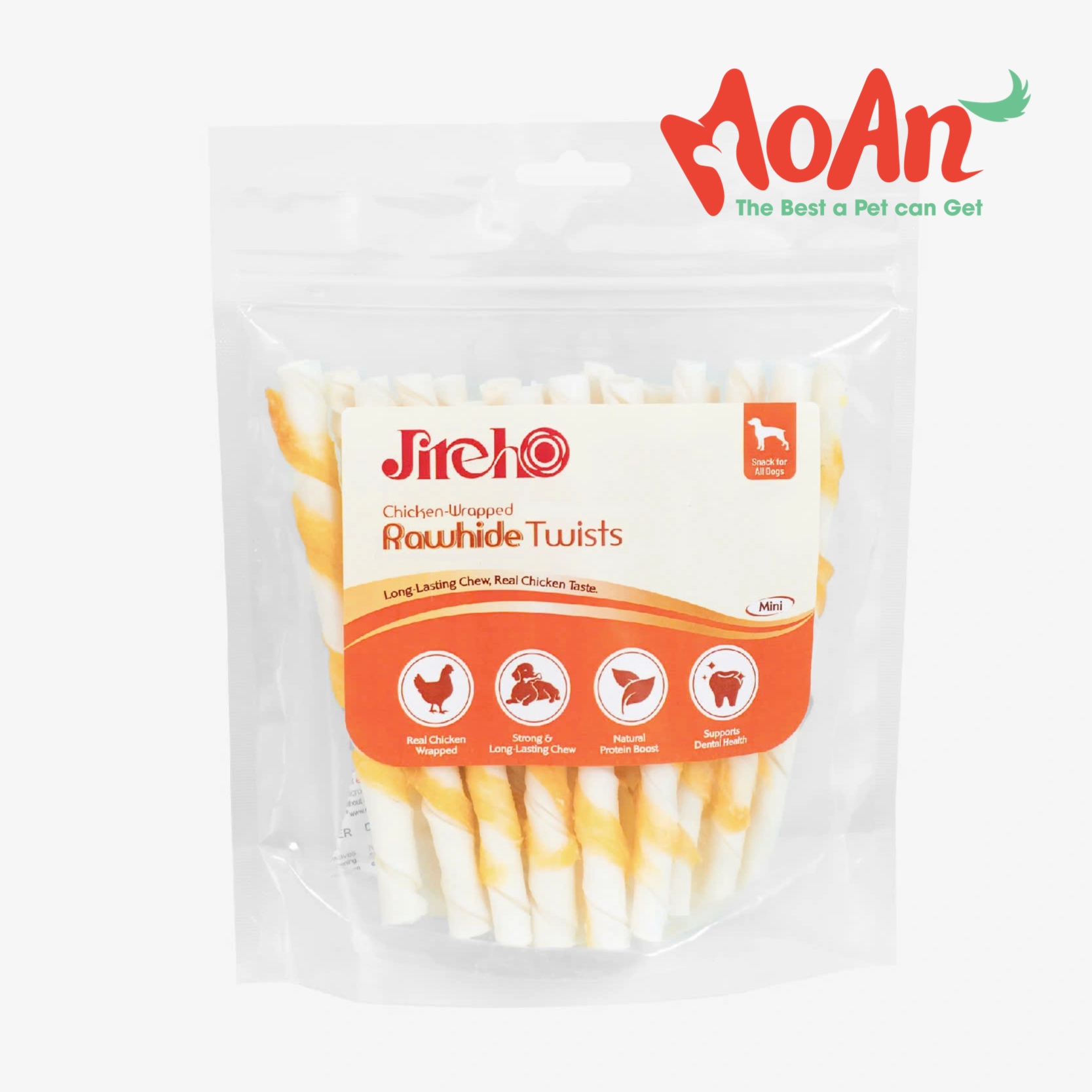 Thanh da bò xoắn quấn gà JirehO cho chó là món snack thơm ngon và bổ dưỡng được làm từ da bò kết hợp thịt gà thật cao cấp, giúp hỗ trợ duy trì cơ bắp khỏe mạnh nhờ nguồn protein tự nhiên và dồi dào.
