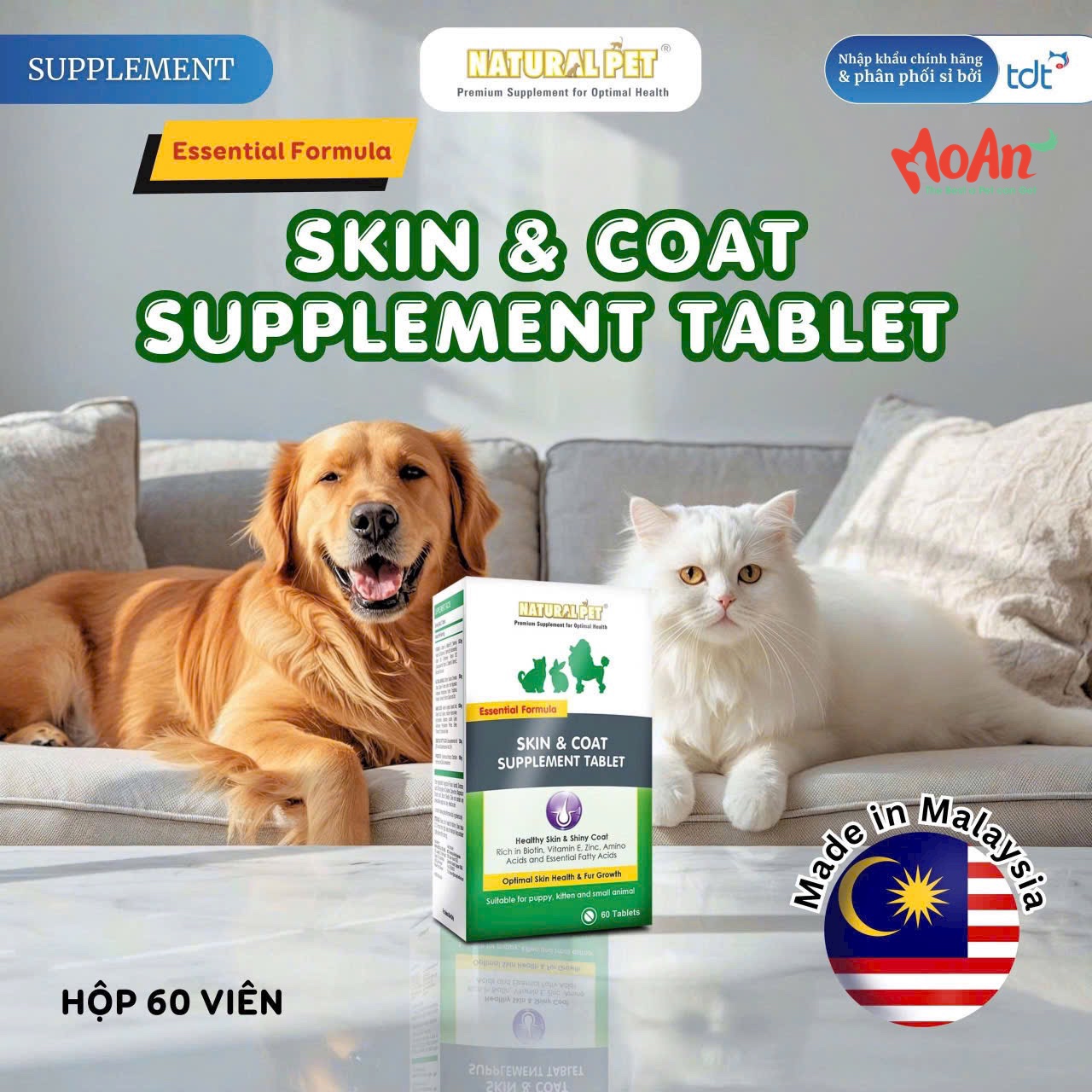 Thuốc Bổ Sung Dinh Dưỡng & Dưỡng Da Lông NATURAL PET Skin & Coat Supplement (Hộp 60 Viên)