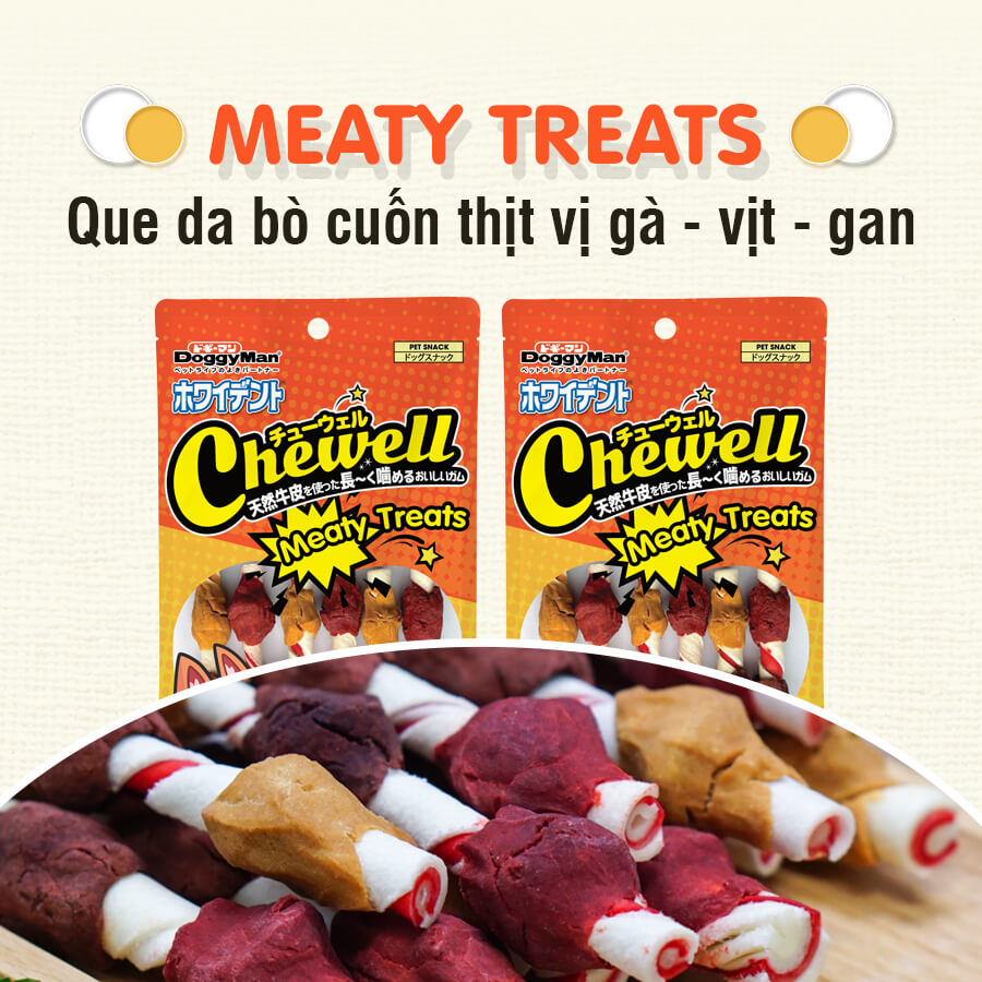 Da bò nguyên sinh có độ dai và chắc chắn. Kết hợp cùng nhiều loại thịt như ức gà, ức vị và gan gà giúp tăng khẩu vị của chó cưng.