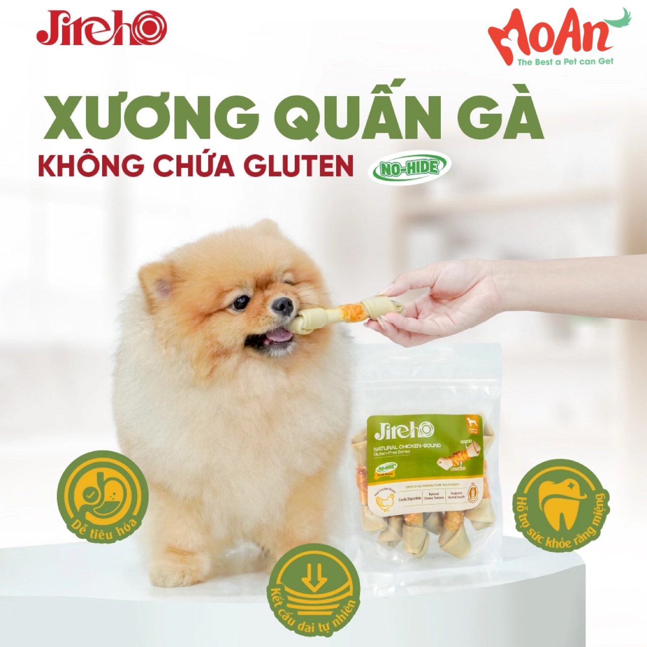 Xương quấn gà không chứa Gluten là sản phẩm xương gặm được làm từ thịt gà thật kết hợp tinh bột khoai mì và khoai tây tự nhiên, mang đến dinh dưỡng dịu nhẹ và thân thiện với dạ dày nhạy cảm nhờ công thức hoàn toàn không chứa gluten.