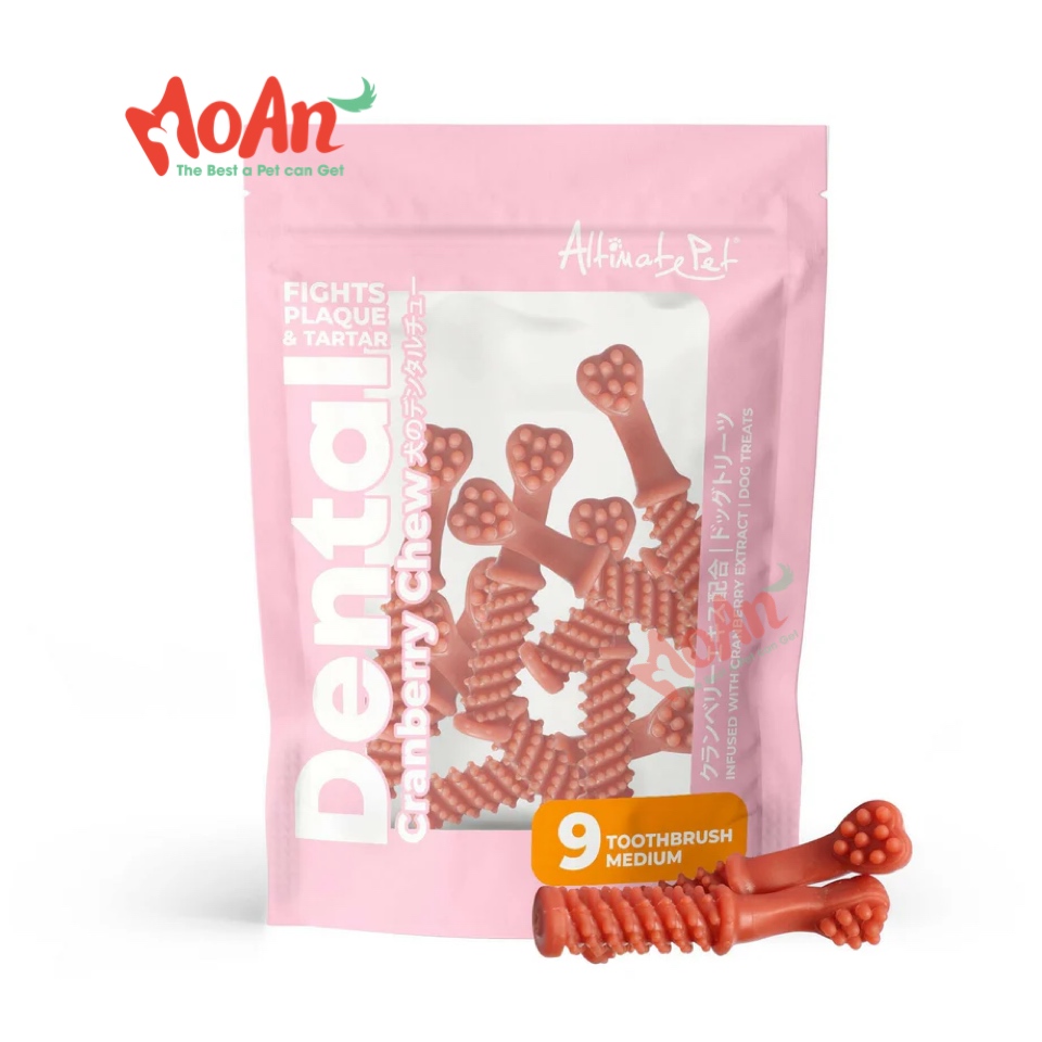 Xương Gặm Sạch Răng Altimate Pet Dental Chews Cranberry Việt Quất [Hình Bàn Chải 9 Xương Medium]