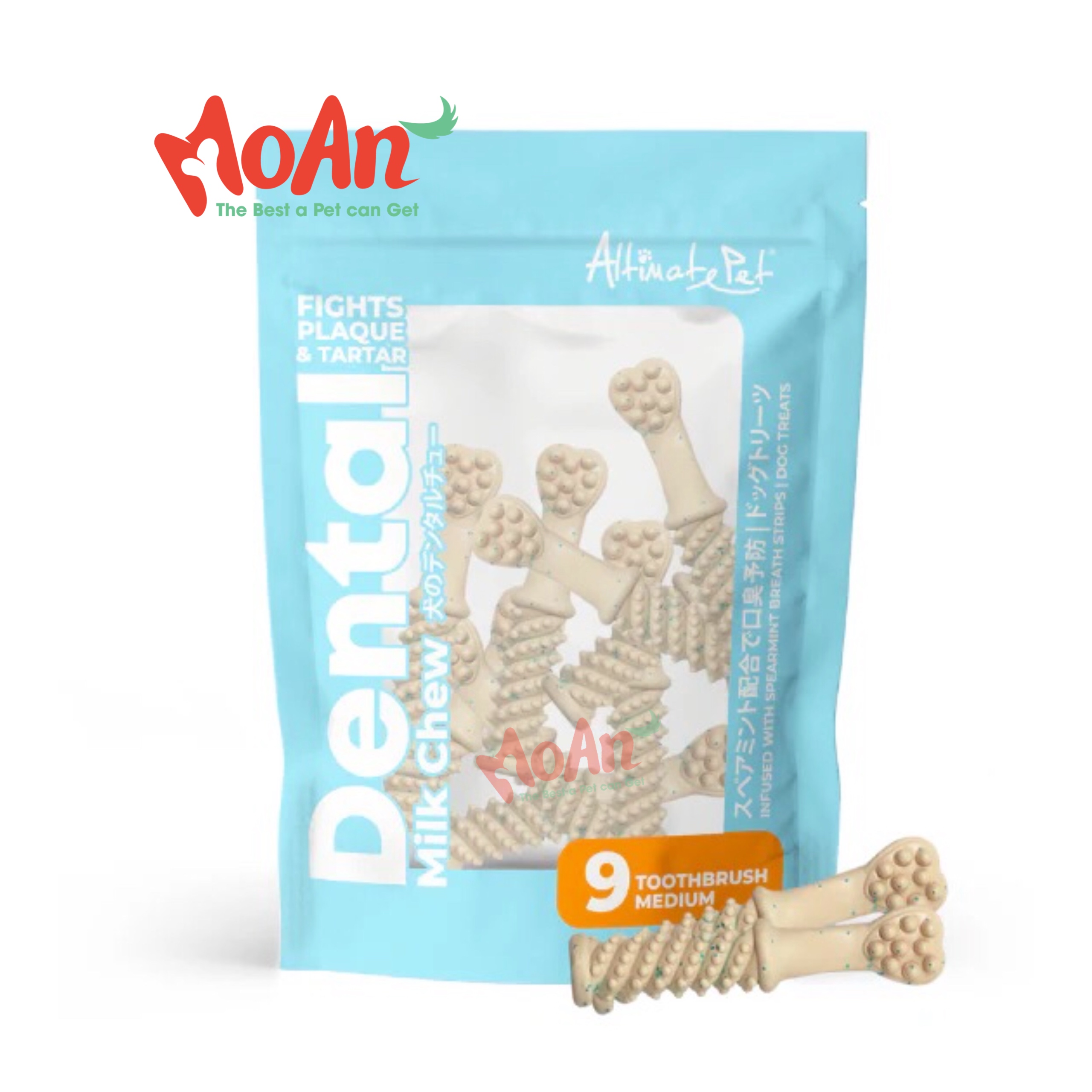 Xương Gặm Sạch Răng Altimate Pet Dental Chews Milk Sữa [Hình Bàn Chải 9 Xương Medium]